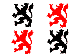 Description: white with four lions of black and red.