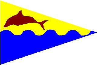 wave; on yellow a blue dolphin.One can consider this canting, as one