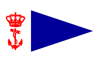 being a war vessel". Triangular blue flag (2:3) with a white hoist