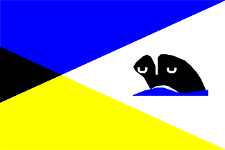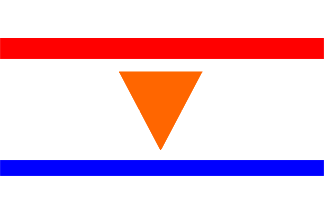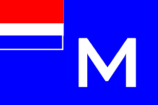 Flag: blue field, in fly white "M", in canton the Dutch colors..