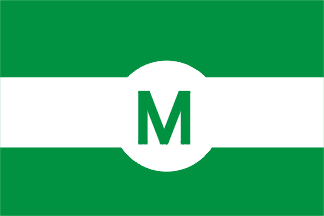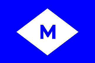 Flag: blue field, white diamond, blue "M".