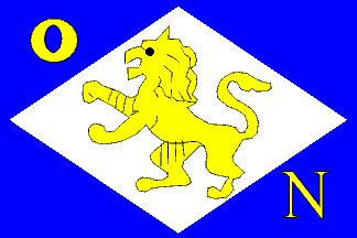 diamond, yellow lion rampant; at hoist top and fly bottom yellow "ON".