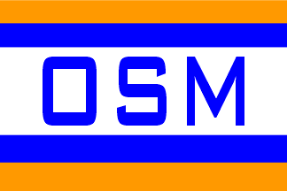 - horizontal Orange - Blue - White - Blue - Orange; on white blue "OSM".