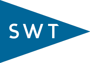 blue pennant, white initials ‘SWT’ (no serifs and no dots).