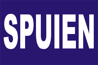 Dokkumer Nieuwe Zijlen: a dark blue flag with white letters "SPUIEN" (sluice)