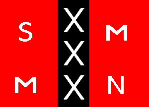 Red with in the center a vertical black stripe with three white X's