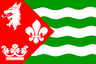 all and at 1/3 flaglength a yellow r4ampant wolf with red tonguie and nails