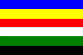 Flag: stripes blue - yellow - red - white - green - black