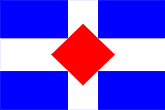 blue flag, white cross, in center on white a red diamond. Smit-Lloyd was