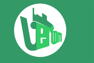 Flag: green field, white disk, charged with the firm's logo. (there