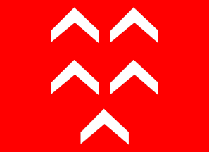 On red five white chevrons, two over two over 1 (In Norwegian: "På raud