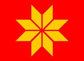 Official blazon in Norwegian: "På raud grunn åtte gule spissruter i rosett."