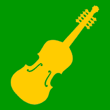 Blazoned in English: "Vert a fiddle or in bend sinister."