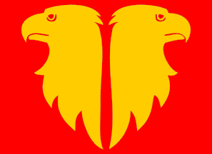 ørnehoder"). The flag and arms were designed by Even Skoglund. The eagle was