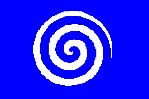 A white spiral on blue. Adopted: 12 September 1986. Designer: Arvid Sveen. The spiral represents the strong tidal current called Moskenesstraumen. The drawing is less than perfect because the spiral is difficult to draw.