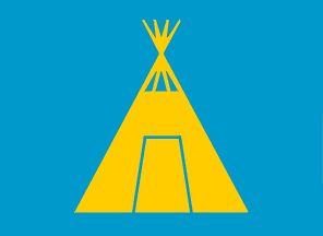 A lavvo, a Saami tent, in yellow on a blue field. The flag was adopted by Royal