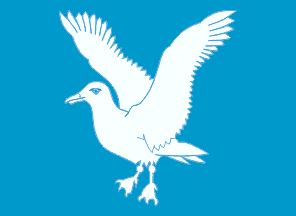 In the flag, the seagull is shown in white against a blue field.