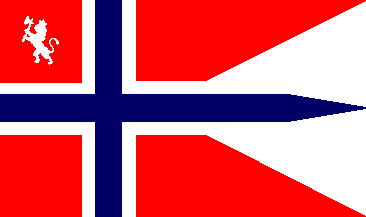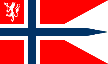 The flag is a standard Norwegian tounged flag with a yellow lion