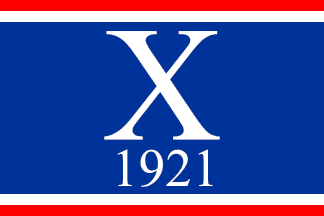 The black and white flag is now replaced by another, still with the X and 1921, but now placed on a background of blue with red and white stripes along to upper and lower part of the field. I passed the museum on Friday just as the flag was taken down and took the opportunity to inspect it.