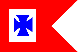rectangle, charged with blue Maltese cross. Brown (1951) has the same flag for