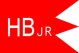 The flag is red, double swallow-tailed, with the letters HBJR (white), JR