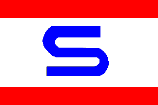 Flag divided by white saltire red - blue; in center