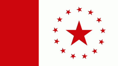 white square, surrounded by 13 small red stars.