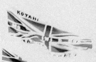 "The top flag is Rua's flag [showing the words] KOTAHI TE TURE MO NGA IWI E RUA MAUNGAPOHATU (one law for both peoples Maungapohatu), then the new national flag, the red ensign [and] the tipuna (ancestral) flag TE TAHI O TE RANGI (the one of Te Rangi), thereby showing Rua's descent from the Tuhoe ancestor of that name."