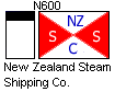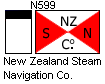 Zealand Steam Shipping Co. with blue letters on white and white letters on red.
