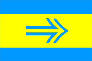 blue - yellow - bright blue horizontal triband; in center bright blue