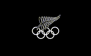 Committee uses the five ringed Olympic flag, with a white silver fern leaf (outlined