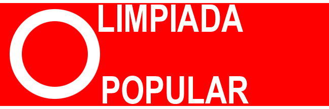 The first one is part of what seem to be the official logo: a white flag (1x3) with thin red bars at the top and bottom, a large red "O" near the hoist and the words "LIMPIADA" & "POPULAR" in red on two rows next to it. The logo itself being the flag held up by 3 persons, each with a different skin colour. I have found it showing up on posters, cards, pins and stamps.