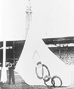 We learn that the first Olympic flag (the ceremonial one, or the one hoisted?)