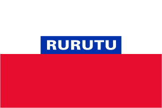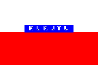 The flag of Rurutu, as seen during the opening ceremony of the Inter-Austral Island Games in 2000 and at the headquarters of the Tahitian Football Federation in 2006, is horizontally divided white-red with a centered blue stripe of half the length of the flag, lying upon the red stripe and bearing the name of the island in white capital letters.