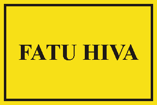 The unofficial flag of Fatu Hiva, seen at the headquarters of the Tahitian Football Federation and used during the Games of the Marquesas Islands 2006 (poster, is yellow with a black frame and the name of the island in black letters in the middle.