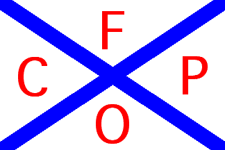 The house flag of the CFPO, as shown in Merchant Marine Houseflags and Stack Insignia (US Navy Hydrographic Office, 1961), is white with the blue saltire and the red letters "C", "F", "P" and "O" in the respective quarters.