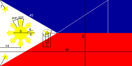 with side equal 90 units. According to the construction sheet above, the flag