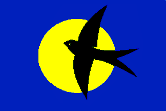 - Blue field with yellow sun; flying through the sun a black swallow.