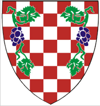 Coat of Arms: checky gules and argent, over all two branches vert with flowers