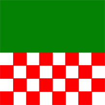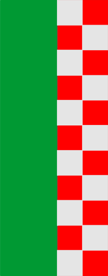Flagdescription: two vertical stripes of green and checky red/silver.