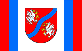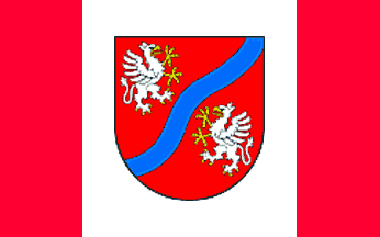 Vertical red-white-red, proportioned c. 1:4:1 with the Coat of Arms in center.