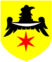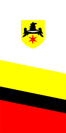 slanting sripes white - yellow - black - red, with in topcenter the communal