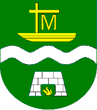 Description: green, near the bottom a wavy white stripe; in center a yellow boat carrying a yellow cross (or gallows?), holding a yellow "M" - the "M" seems to be taken from the arms of Pope John Paul II.