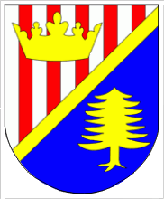 "Arms: the shield divided by the golden slant (left). On the right,
