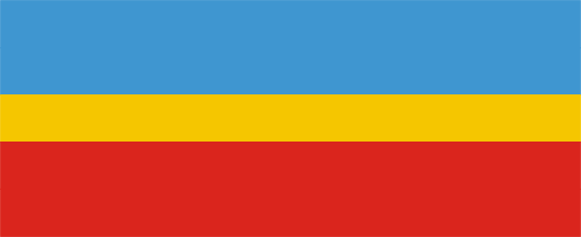 Flag: of three uneven horizontal color bands: blue-yellow-red .