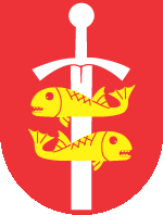 means Baltic Sea. There are a sword and two rapacious fishes on the coat