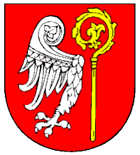 "Arms: on the red shield a silver wing and leg of an eagle and a golden