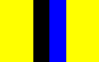Flagdescription: 4 vertical stripes yellow, black, blue, yellow, proportioned