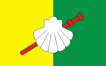 In the middle of the flag there are a conch (scallop shell) and