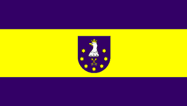 are the insygnia of Ostrzeszów county, to wit the flag and Coat of Arms, looking